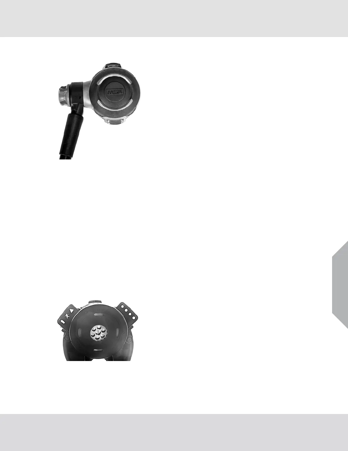 the cylinder pressure and alarm status while wearing the SCBA. The HUD receives power and infor-