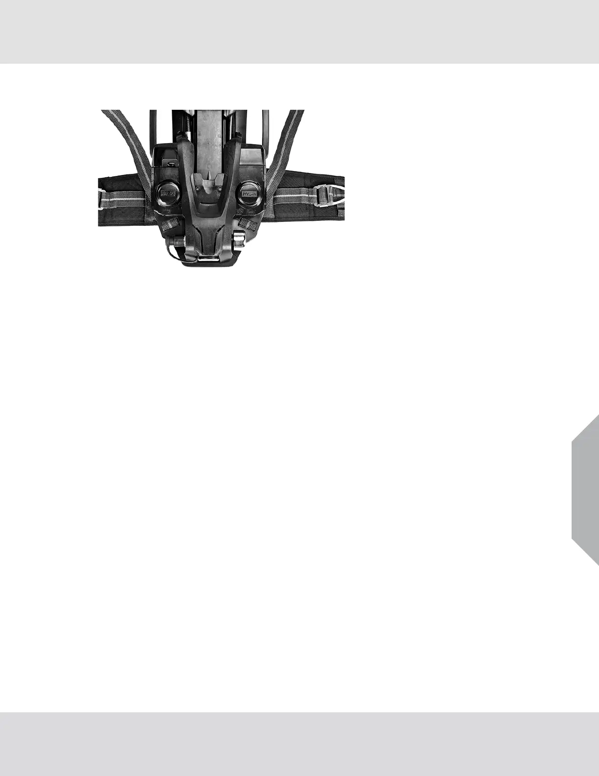 The carrier and harness assembly is designed to position the SCBA on the user securely and comfort-