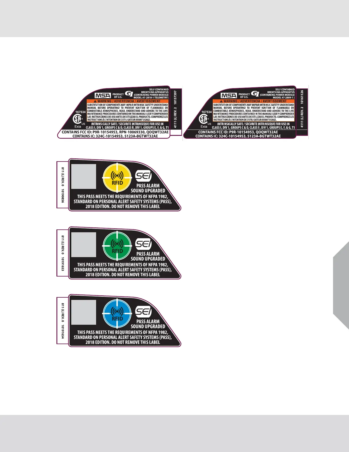 MSA G1 SCBA - 20 Product Labels