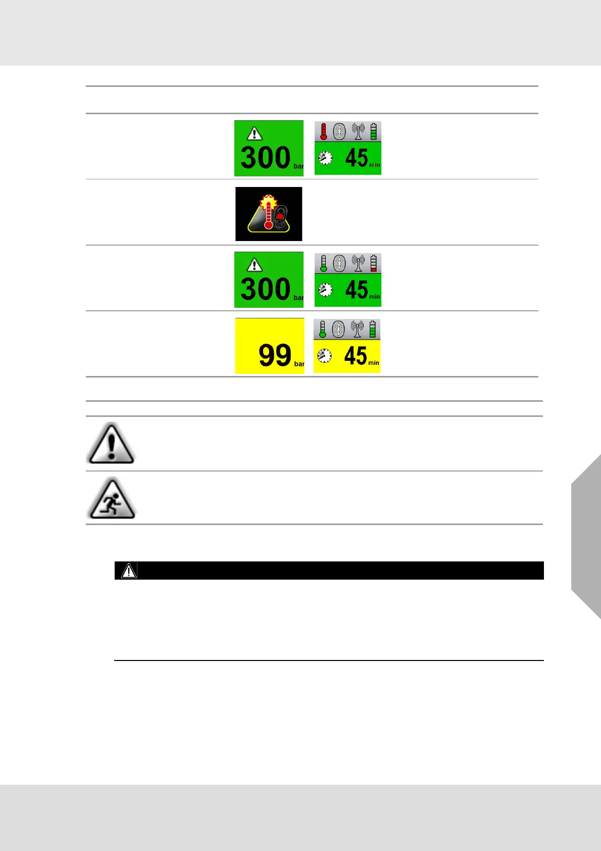 Evacuation alarm, the running man icon is visible on the primary screen if the evacuation