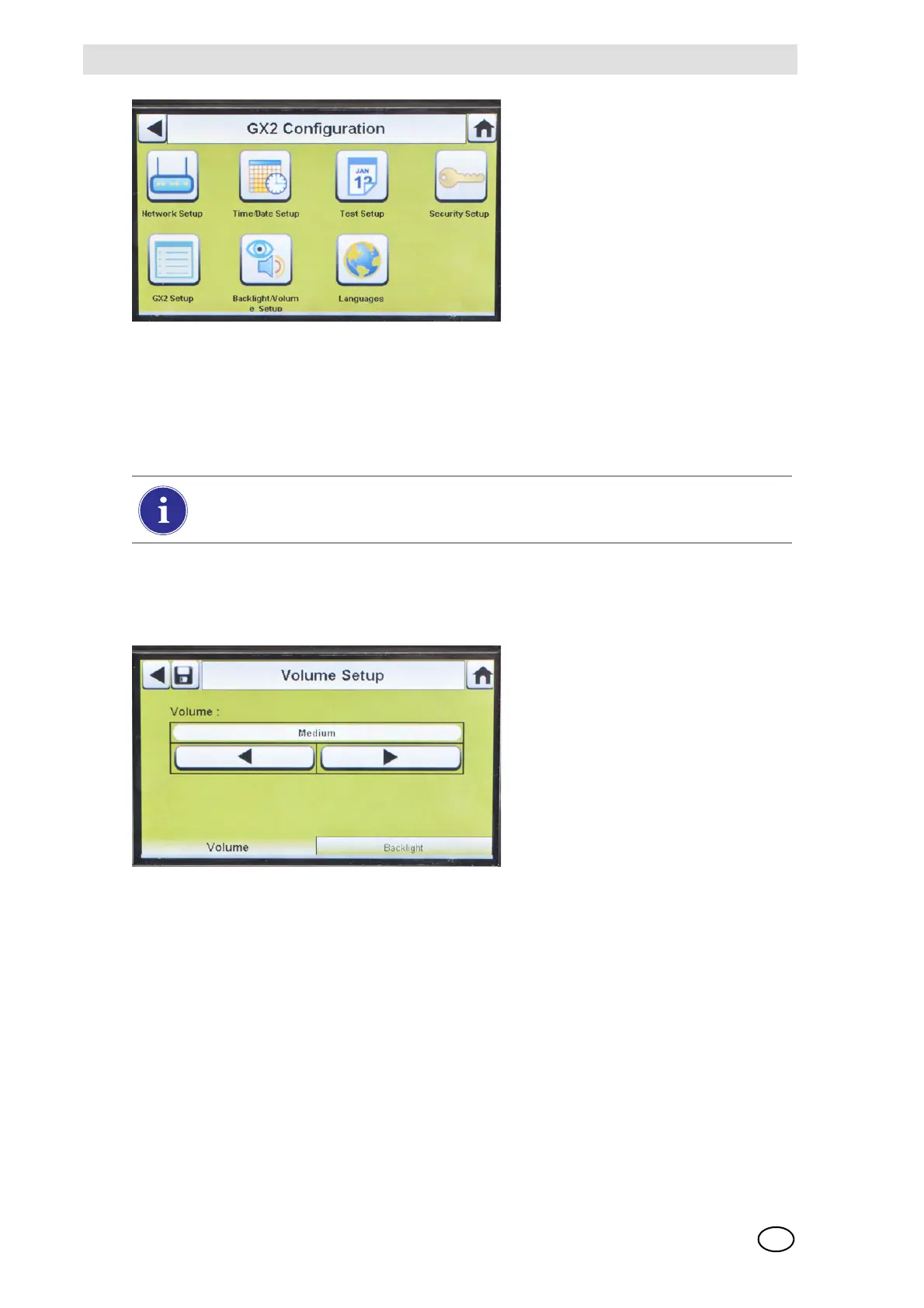 Select Backlight/Volume Setup on the GALAXY GX2 Configuration screen [ Fig. 16] to access