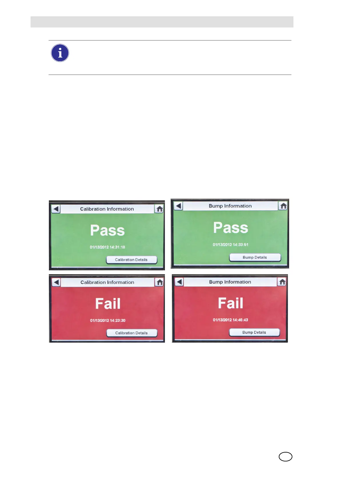 If the instrument fails the test, select Calibration Details or Bump Details for sensor failure