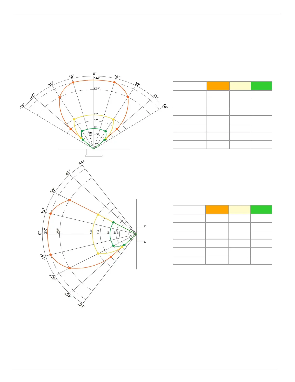 and vertical FOV are defined for high, medium and low sensitivity settings of the FL5000, as shown in the charts below.