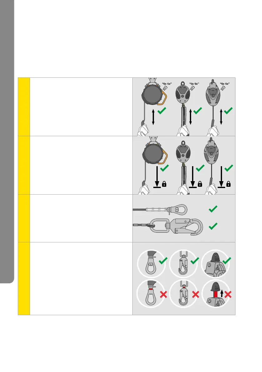 Работа и употреба: Закачете Latchways SRL към обезопасителна точка* над главата,