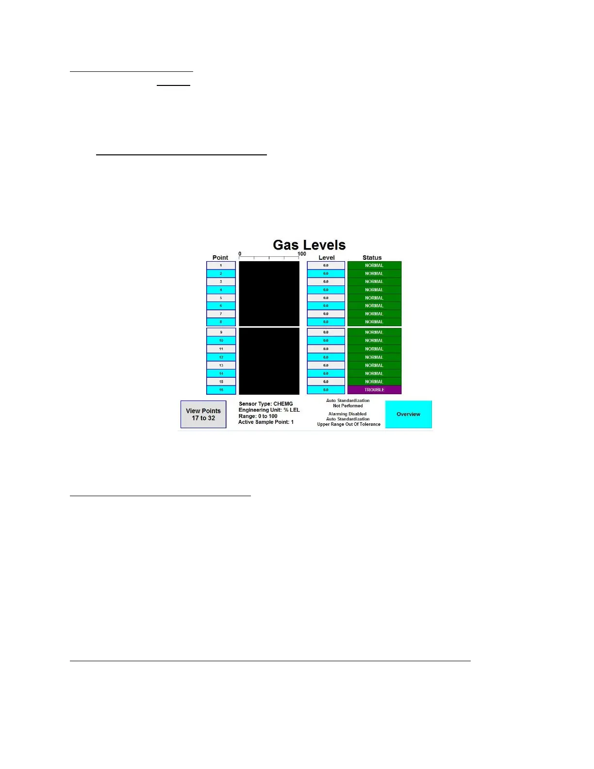 The Gas Level screens are used to view the specific details associated with the gas detection features