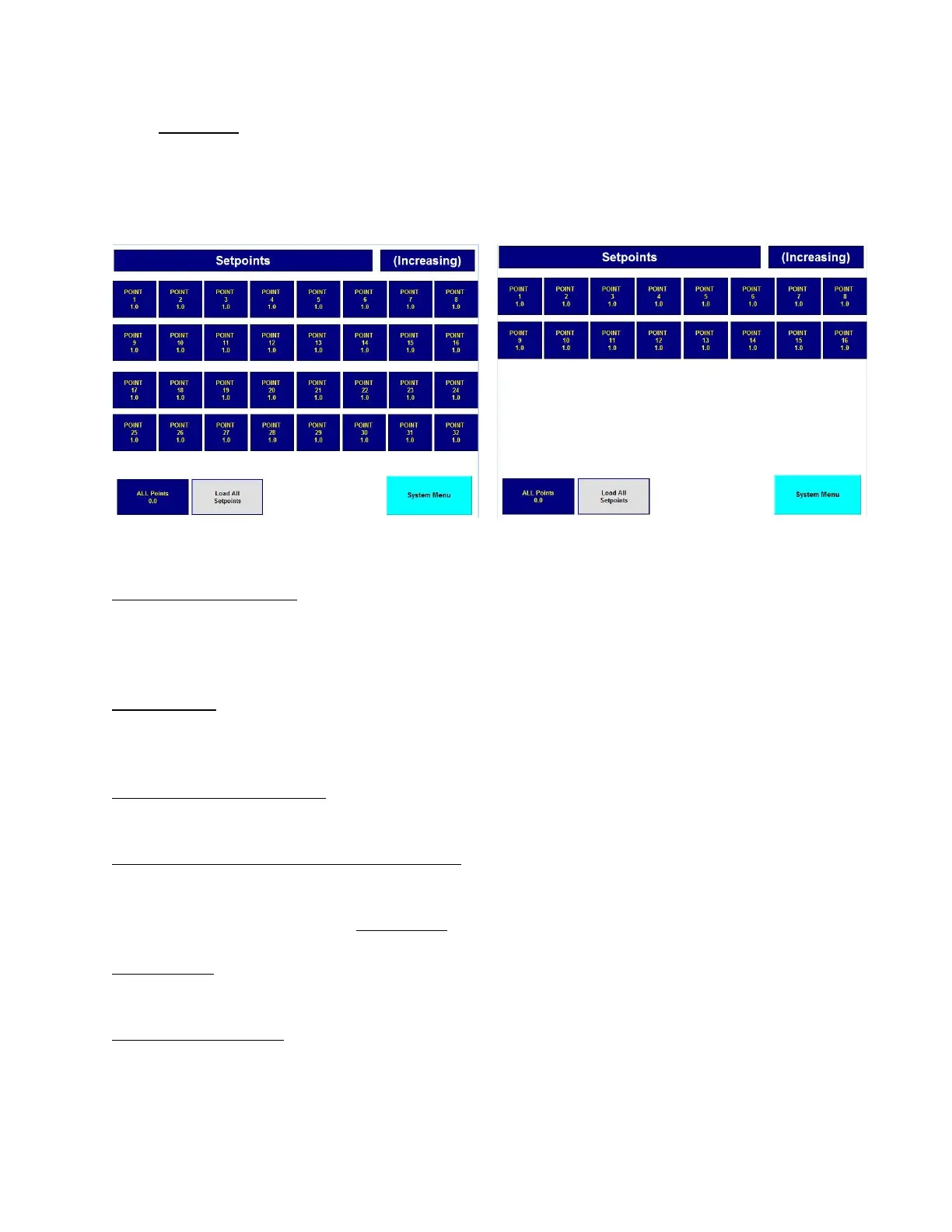 "Load ALL Set points" - A push button which loads the value in "ALL Points" into "Point 1" through