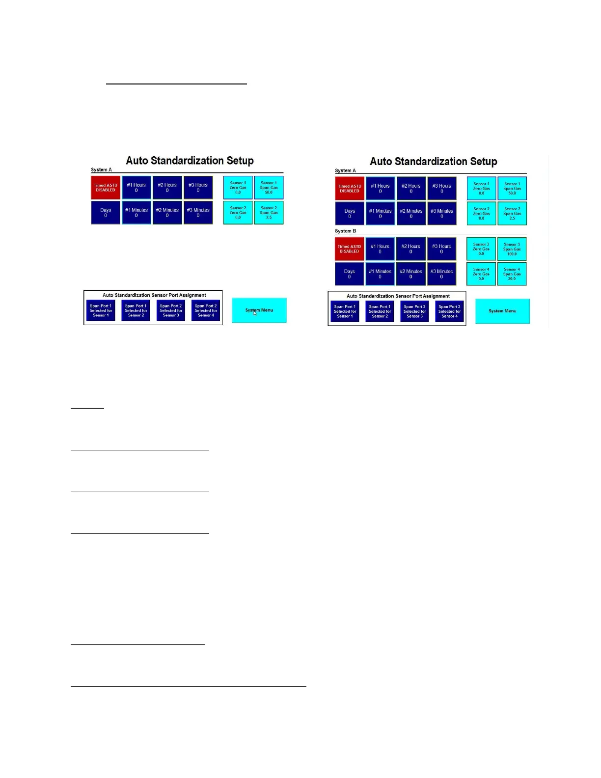 days, and 3 specific times for timed auto standardization. The zero gas concentrations and span gas