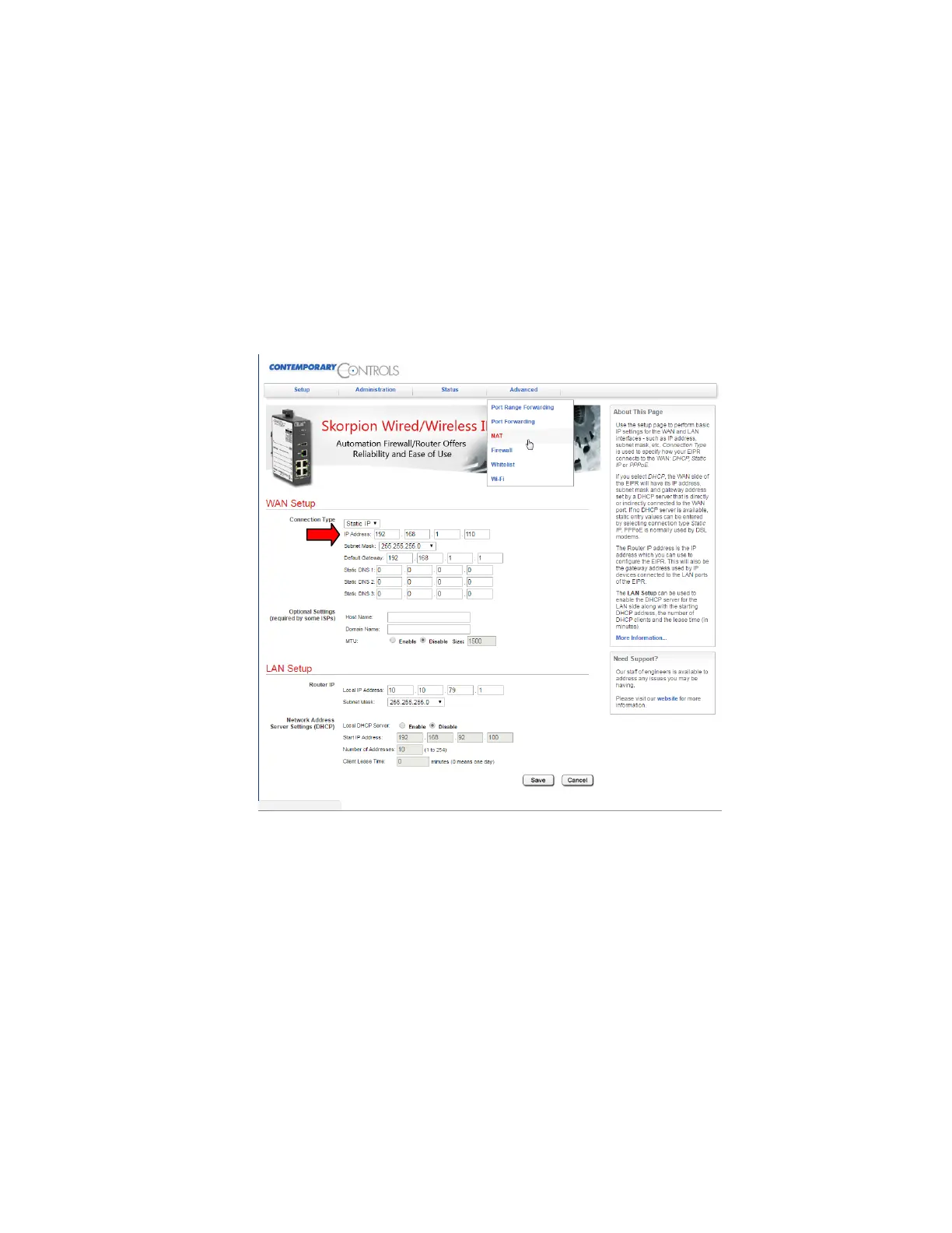 browser to access the router from the WAN side port. Click “Save” when complete and the router