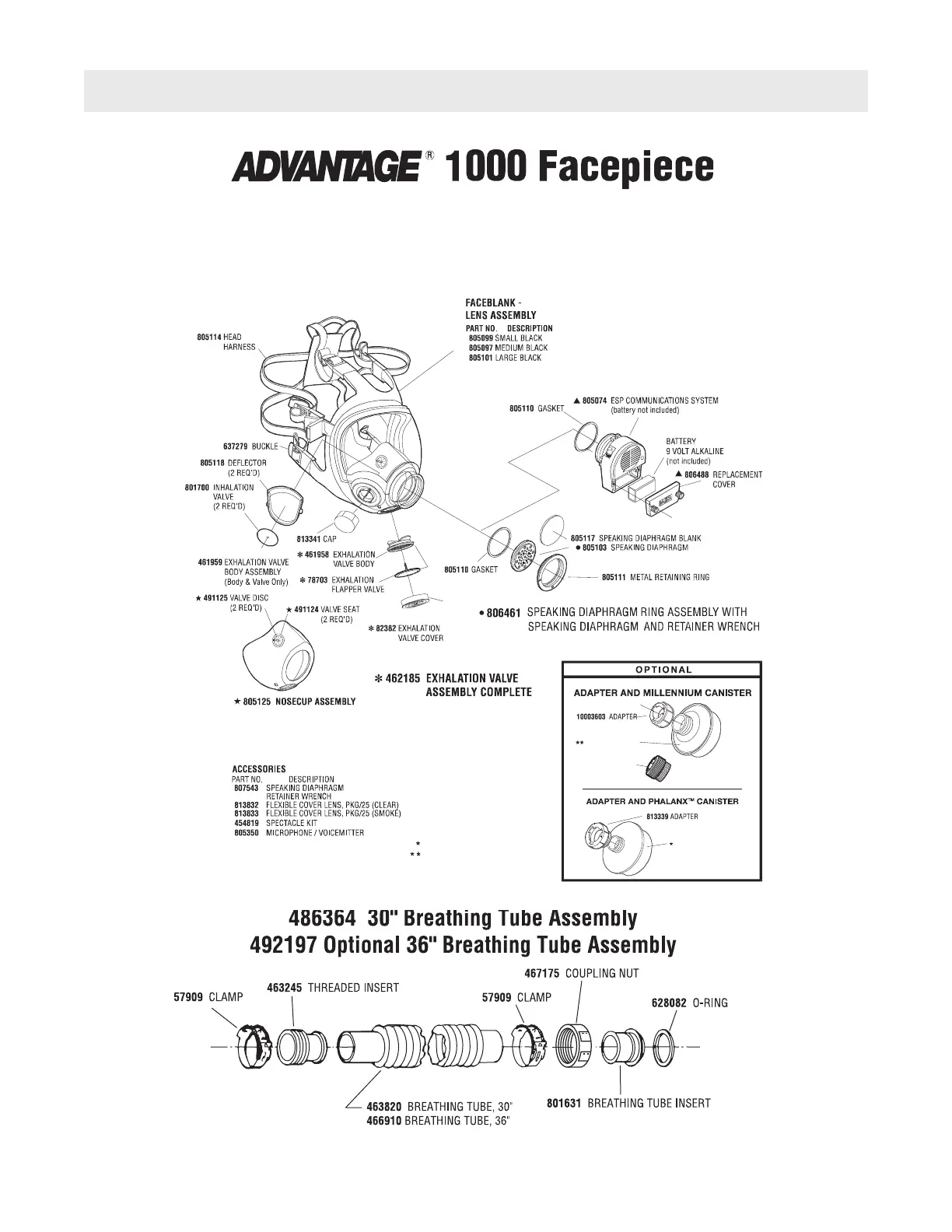 Note: Advantage 1000 Facepiece must have the P/N 10012413 kit and P/N 96547