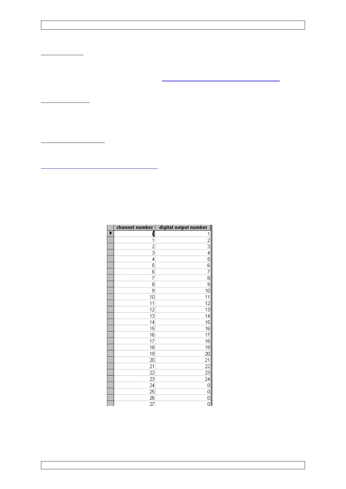 View of the“digital output map” listing:
