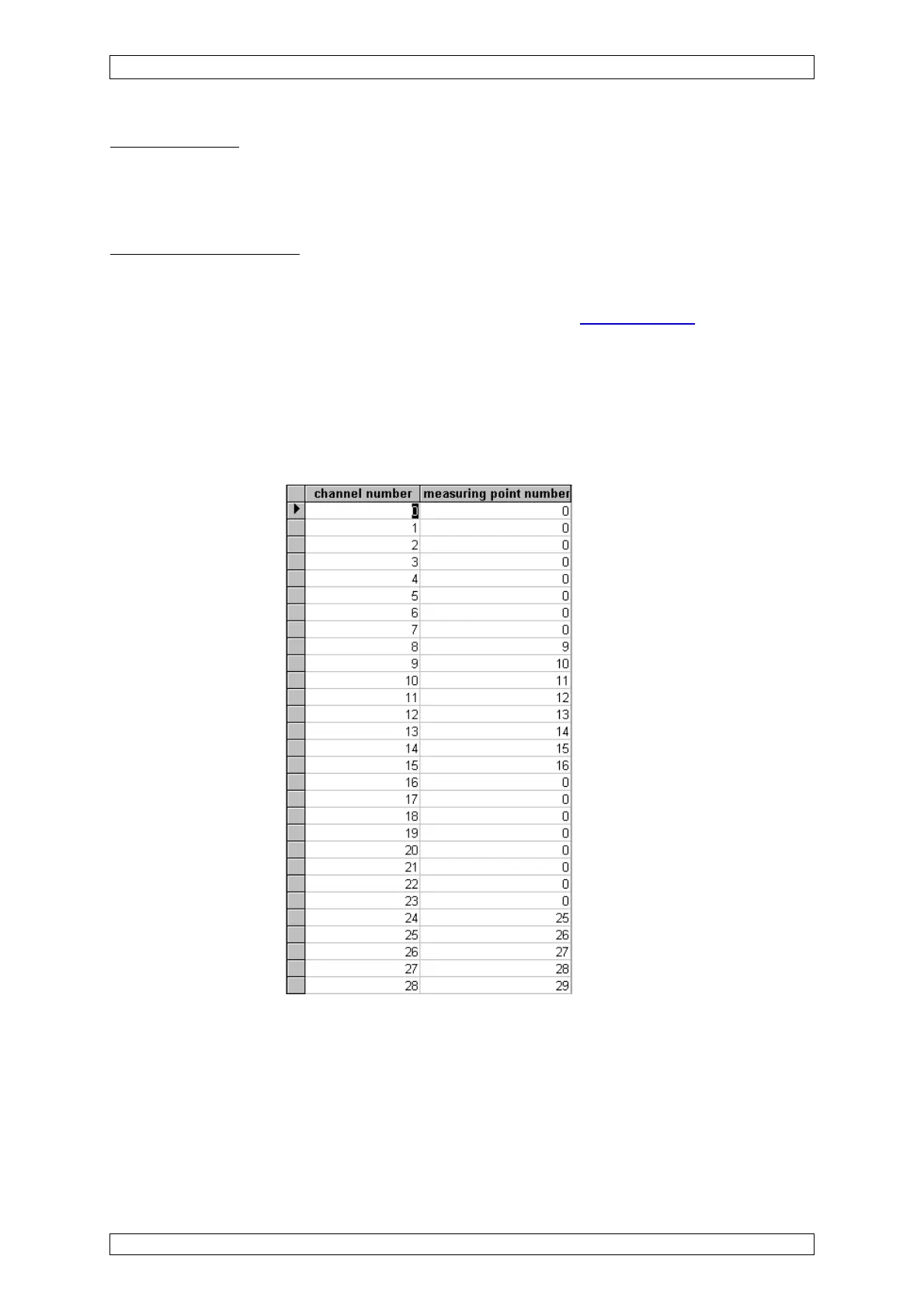 point” in the parameter setting. The measuring point numbers may be assigned freely. To avoid