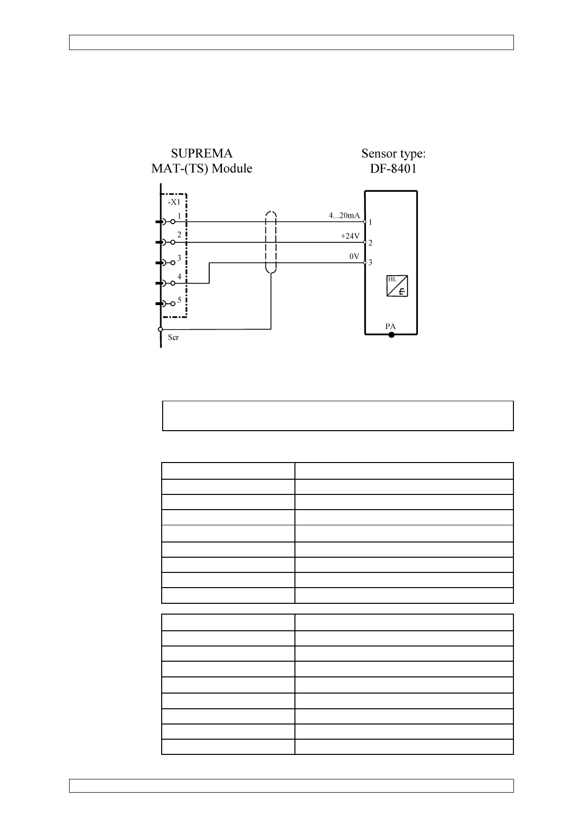 The cable screen is connected at the SUPREMA and the DF-8401.