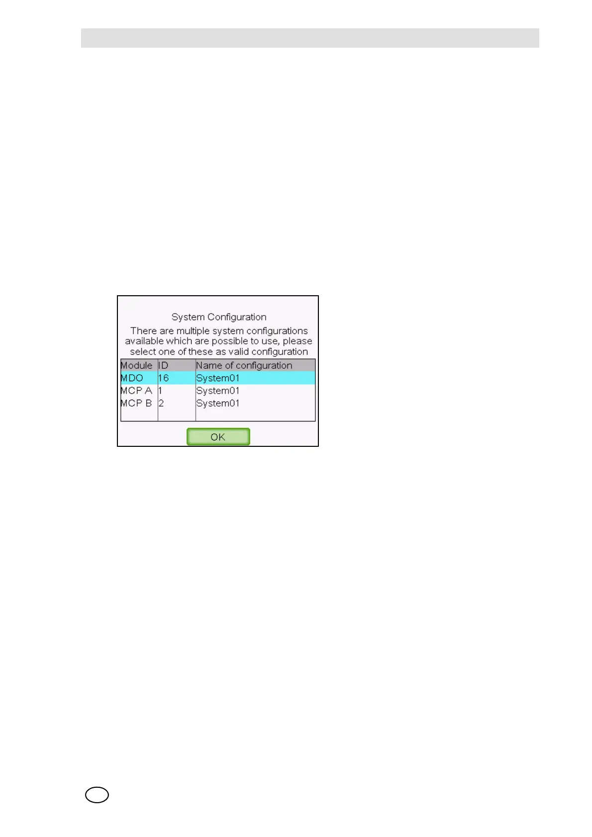 of an MCP, a system configuration message appears when the system is switched on for the first