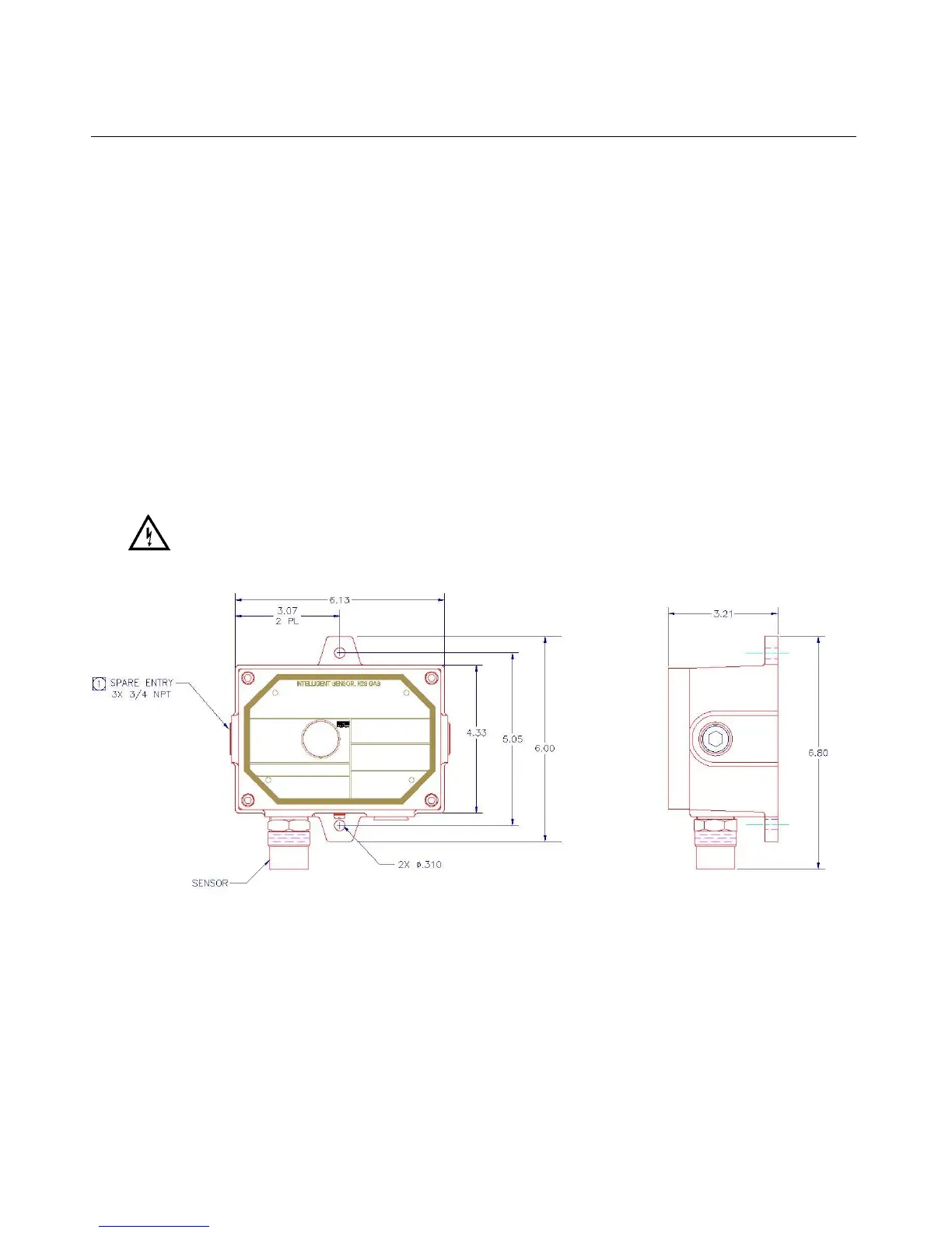 The outline and mounting dimensions for the Ultima MOS-5 Intelligent Sensor (Figure 1) should