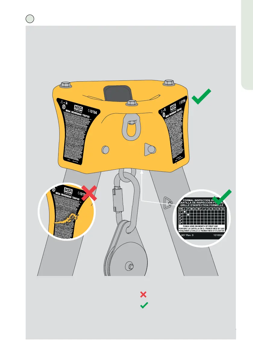 Inspect the Tripod labels to verify that they are present and legible. Check the formal inspection grid to be