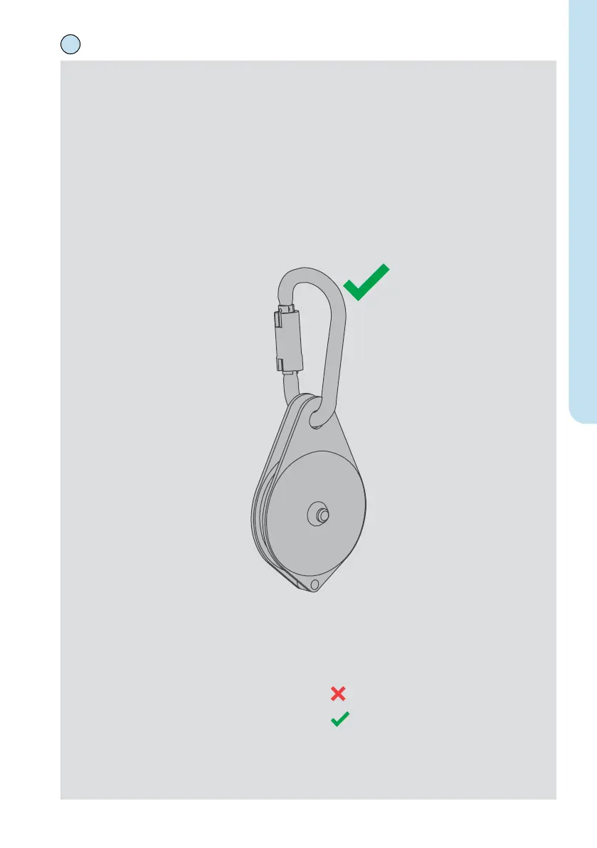 Ensure the pulley wheel rotates freely and the karabiner gate closes and locks securely.