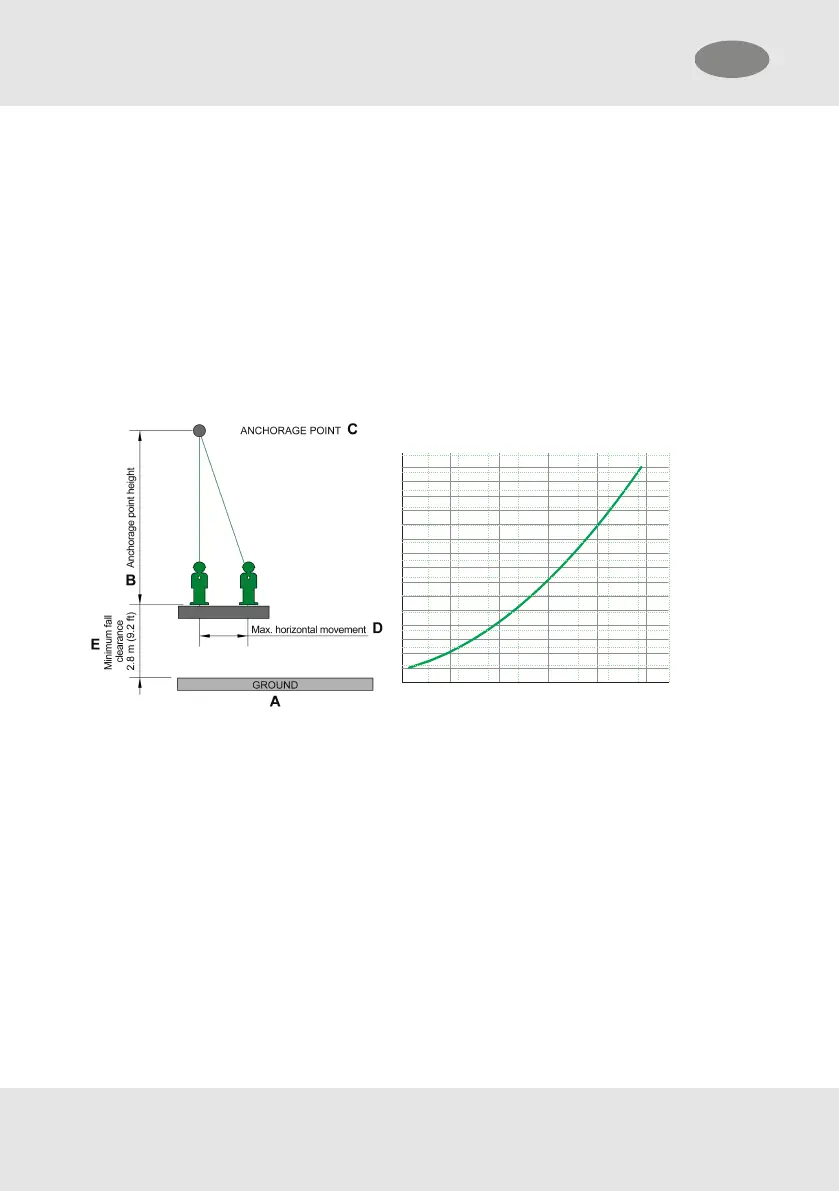 Minimální prostor pro pád z výšky je 2,8 m (9,2 stopy). Prostor pro pád z výšky se počítá jako vertikální