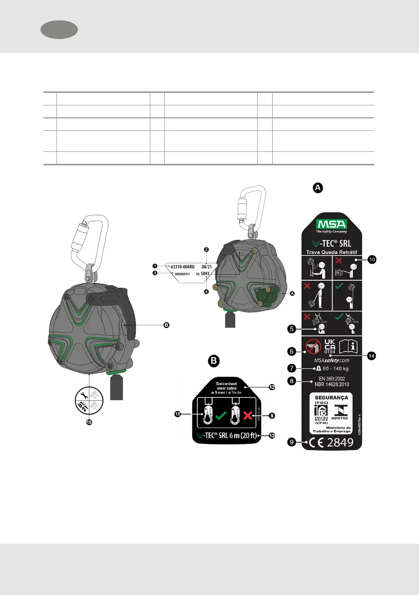 2 Datum výroby mm/rr 7 Kapacita 12 Konstrukce záchranného lana