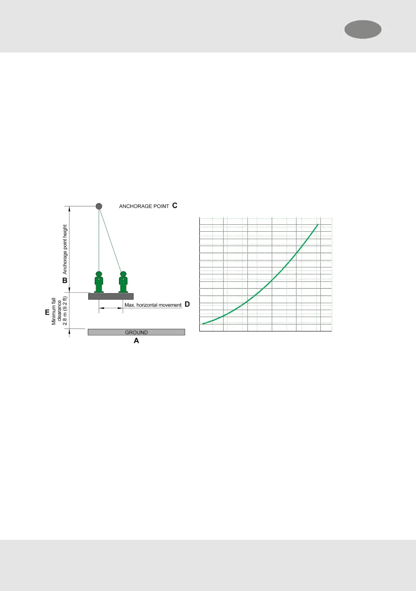 Den minimale faldlængde er 2,8m (9,2ft). Fri faldlængde beregnes som den lodrette afstand mellem