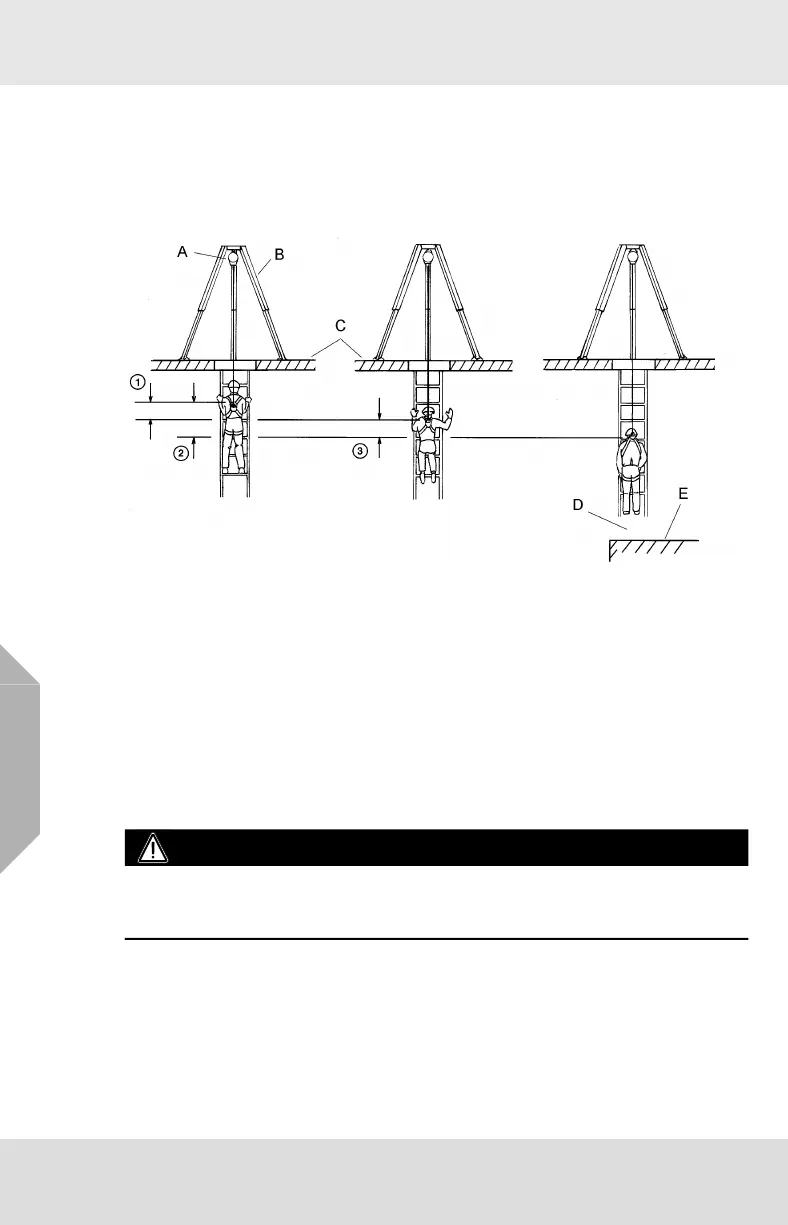 Make certain that enough clearance is available in all potential fall paths to prevent striking an object.