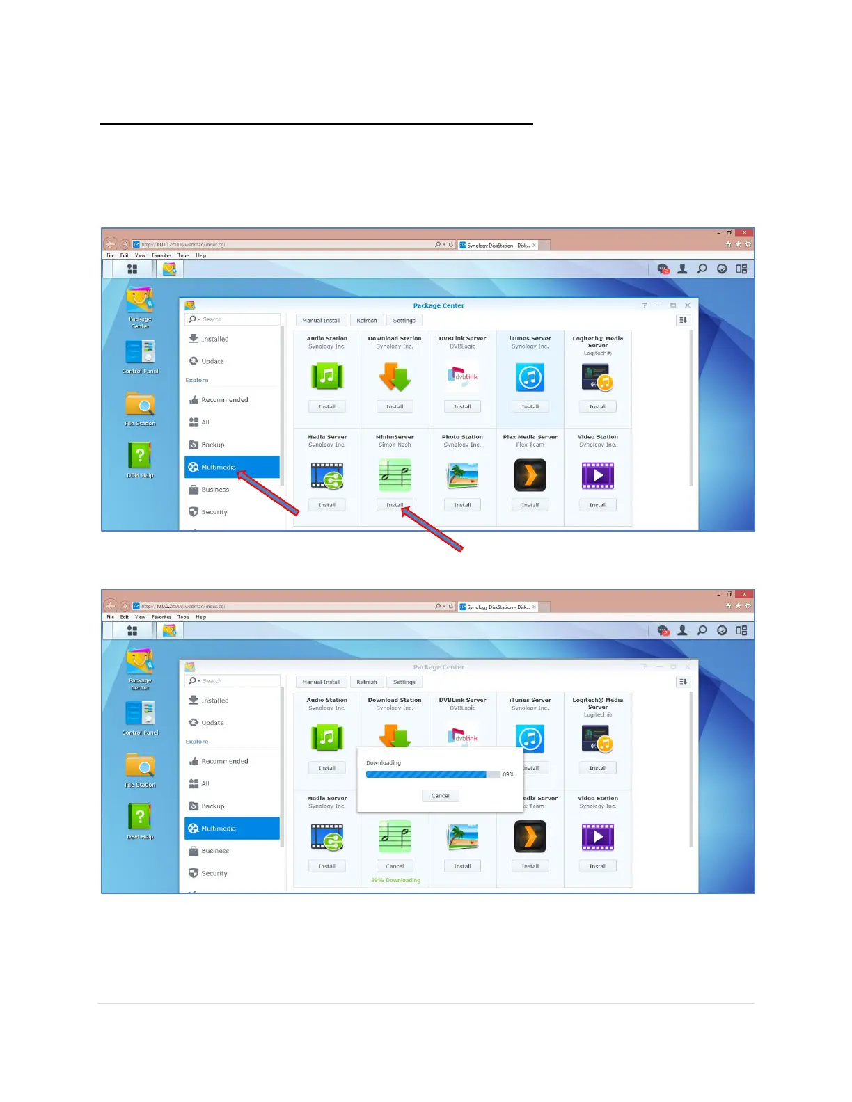 the NAS desktop click on the Package Center and select Multimedia from the Package