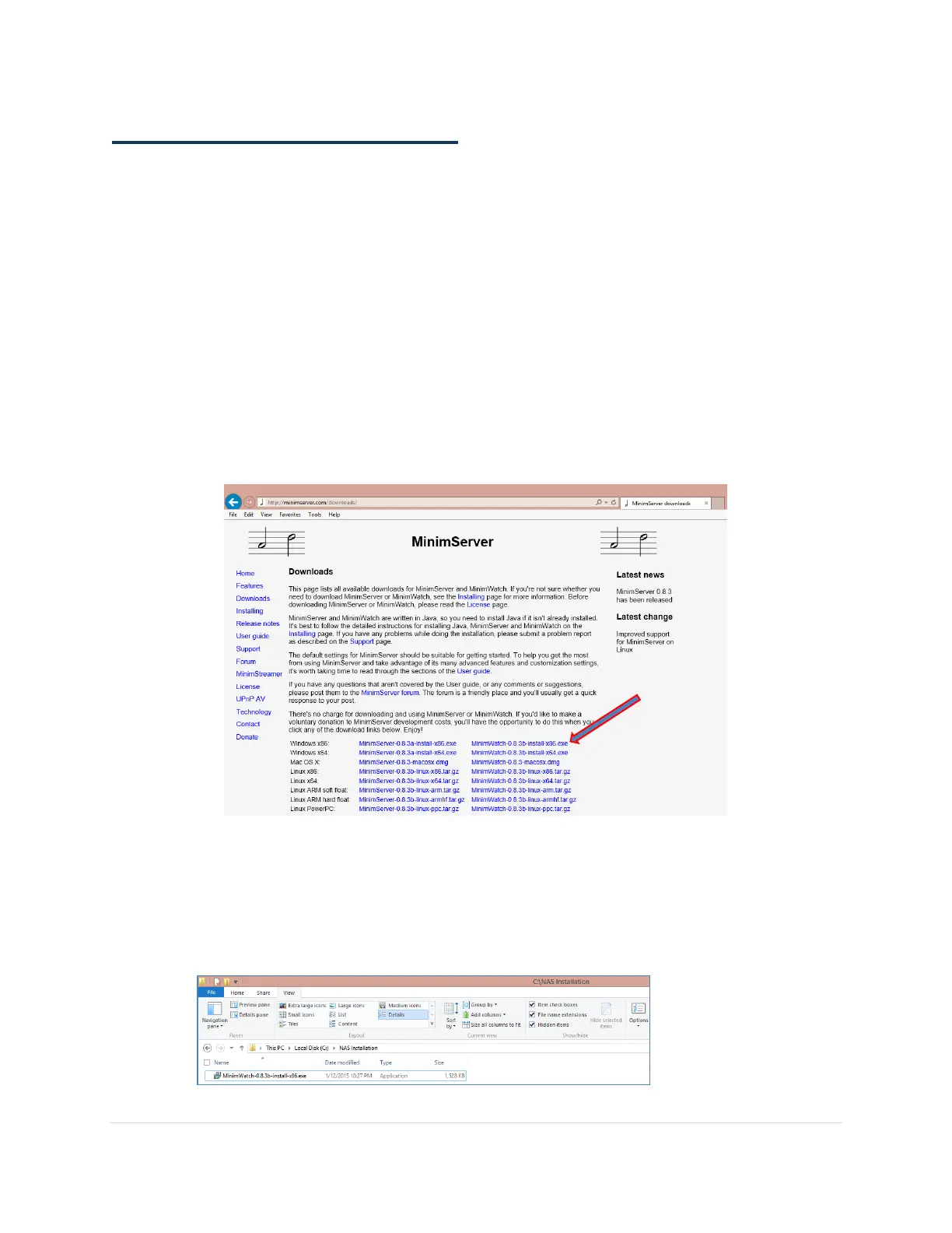 1. Navigate to the MinimServer download website on your laptop (Not the NAS) and be