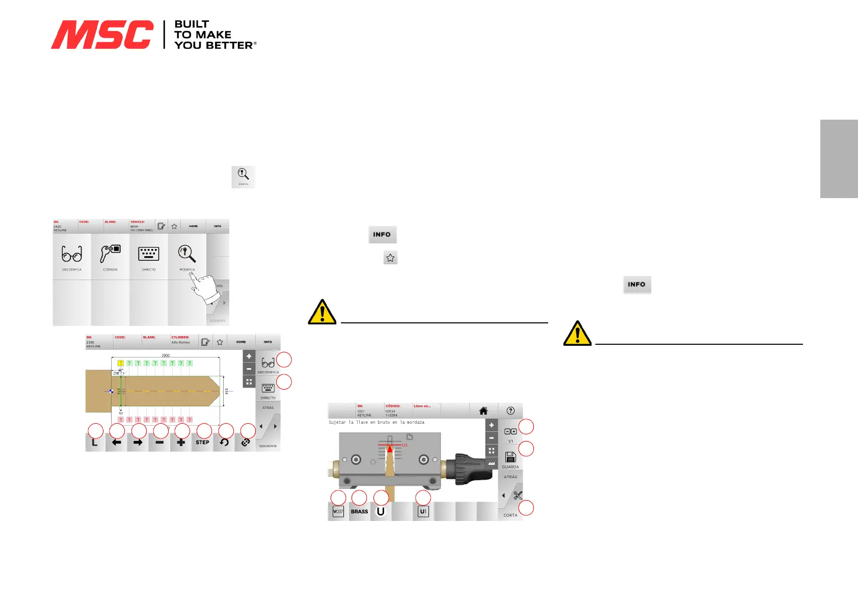 pantalla de CORTE, que permite reproducir la llave deseada.