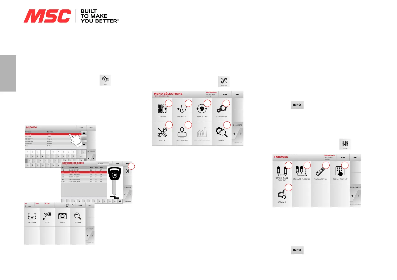 Le menu TARAGES permet d'accéder aux fonctions de réglage