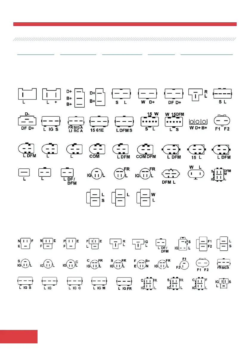 MSG Equipment MS002 COM - APPENDIX 2 - Typical Alternator Connectors; ДОДАТОК 2 - Типові Розєми Генераторів; ZAŁĄCZNIK 2 - Typowe Złącza Alternatorów; ANEXO 2 - Conectores Típicos de Alternadores