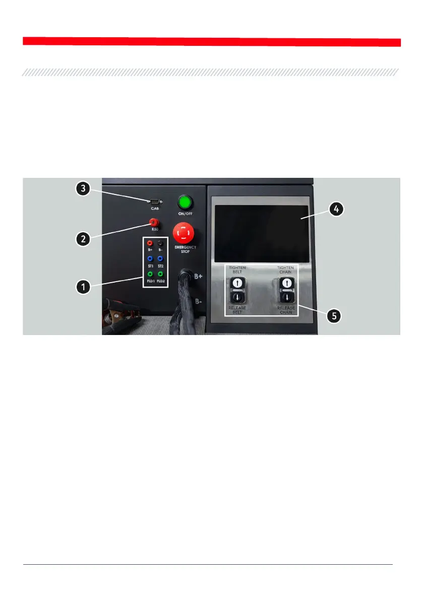 5 – Кнопки управления затяжной/ослаблением ремня привода генератора и цепи фиксации