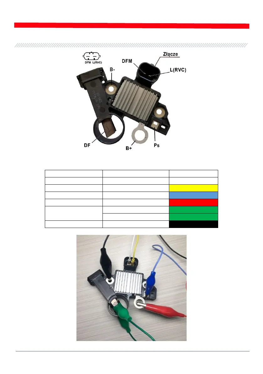 Tabela 2 - Podłączenie regulatora ARE1054 do testera