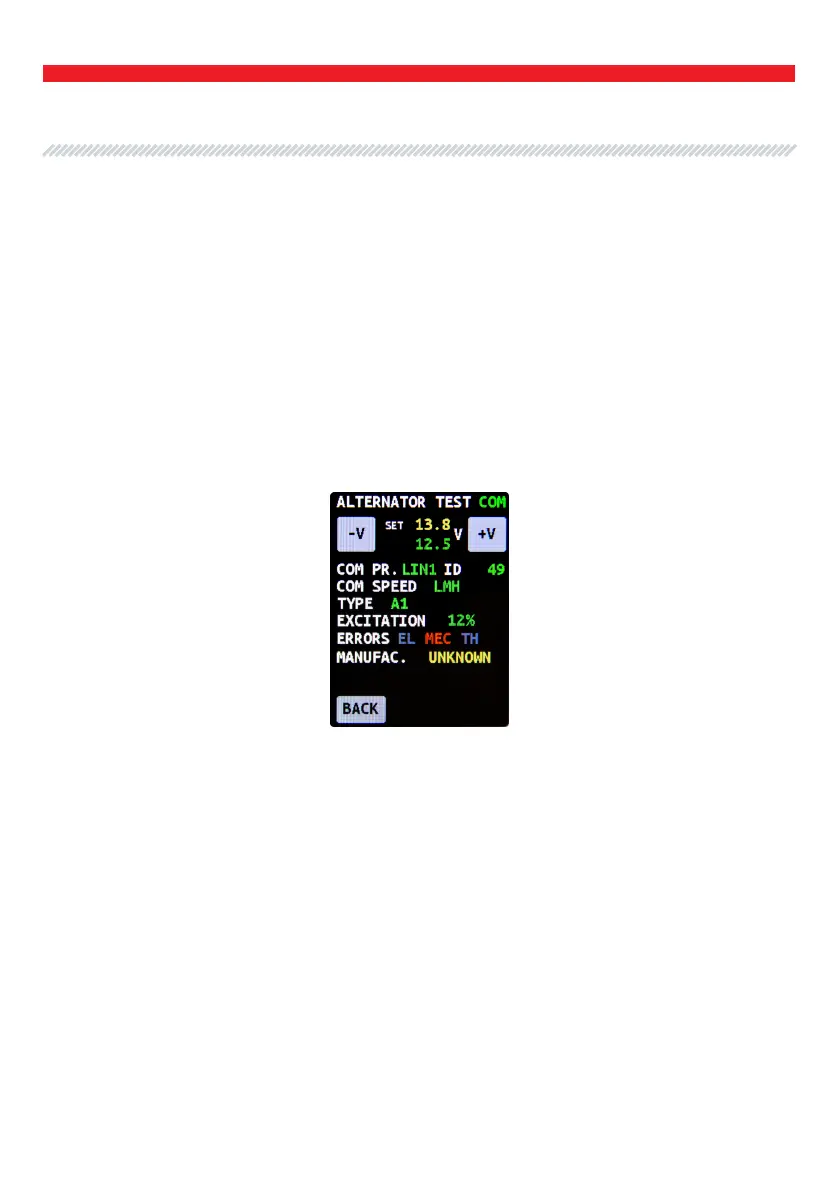 Wybierając tryb diagnostyczny generatora typu „COM”, na ekranie urządzenia wybierane są