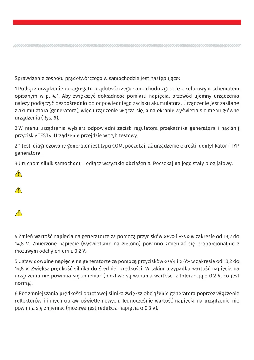 5.2 Sprawdzanie agregatu prądotwórczego w samochodzie