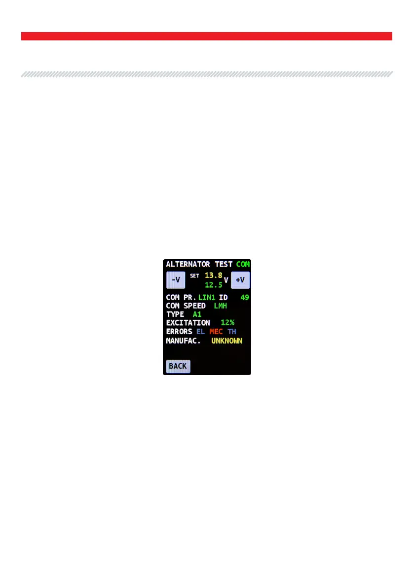 При выборе режима диагностики генератора типа «COM» на экране прибора отобраться