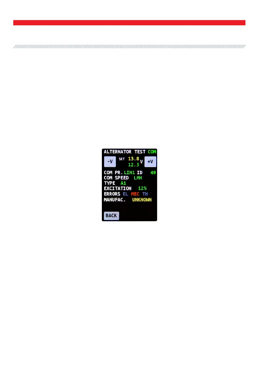 5) “COM SPEED”: speed of data exchange between the voltage regulator and vehicle ECU. The
