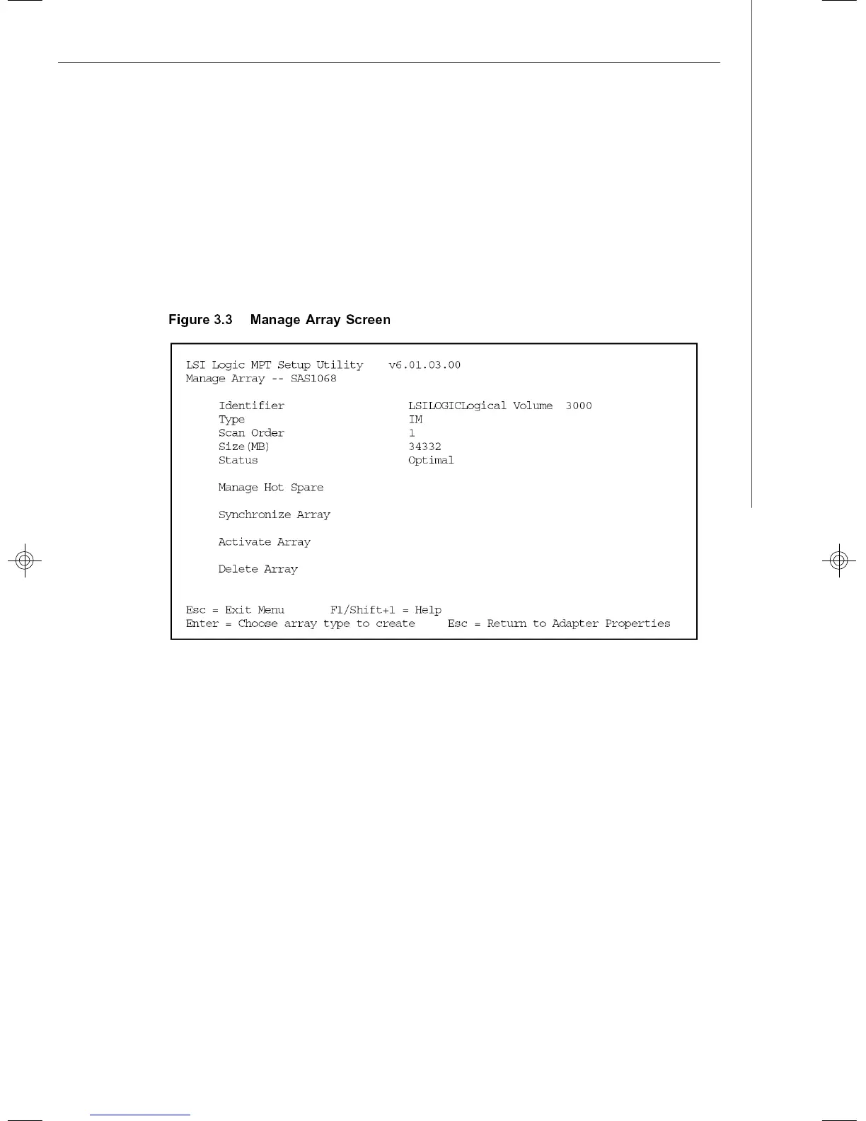 2. Select Manage Hot Spare on the Manage Array screen, shown in Figure 3.3.