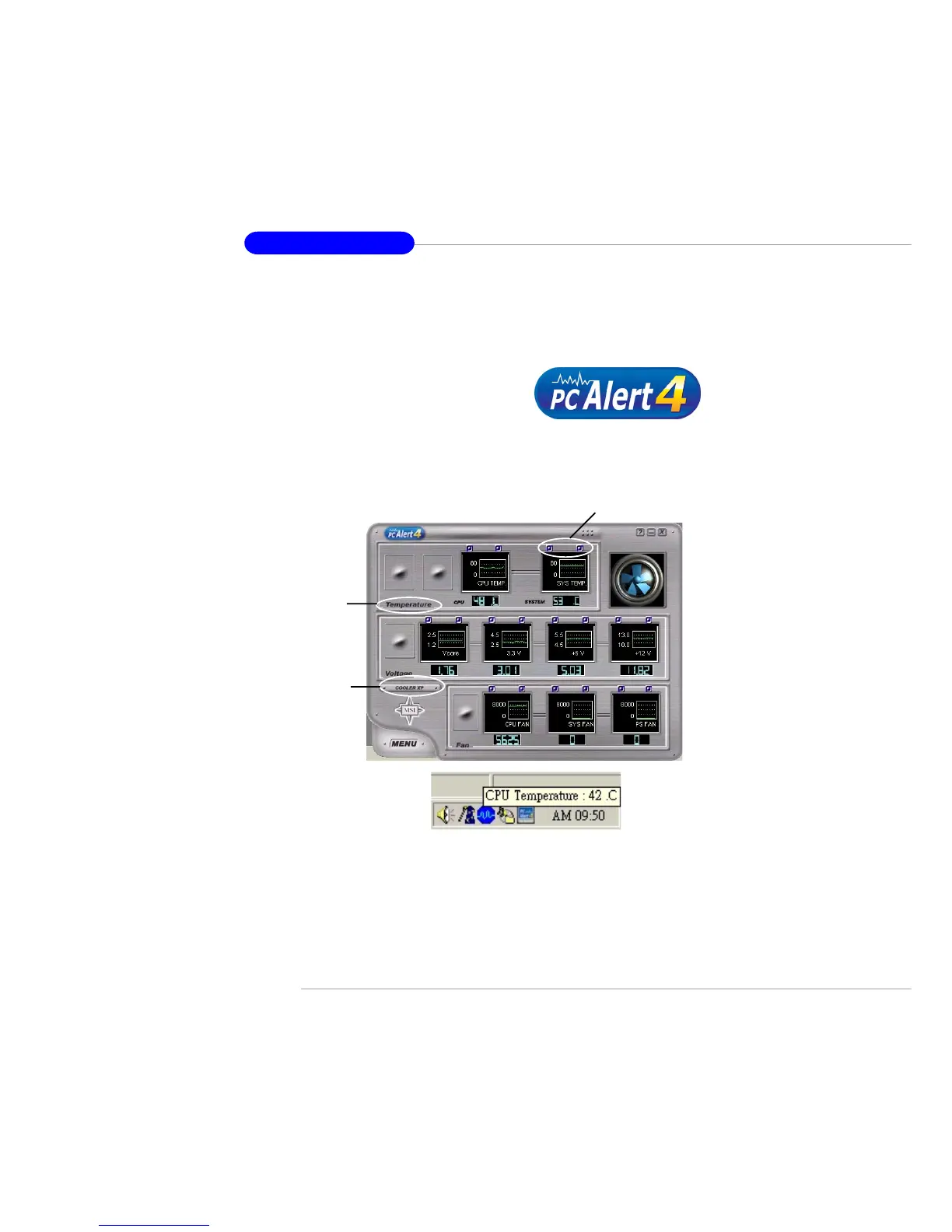 sius (℃). The PC Alert™ 4 icon on the Status Area will show the current CPU