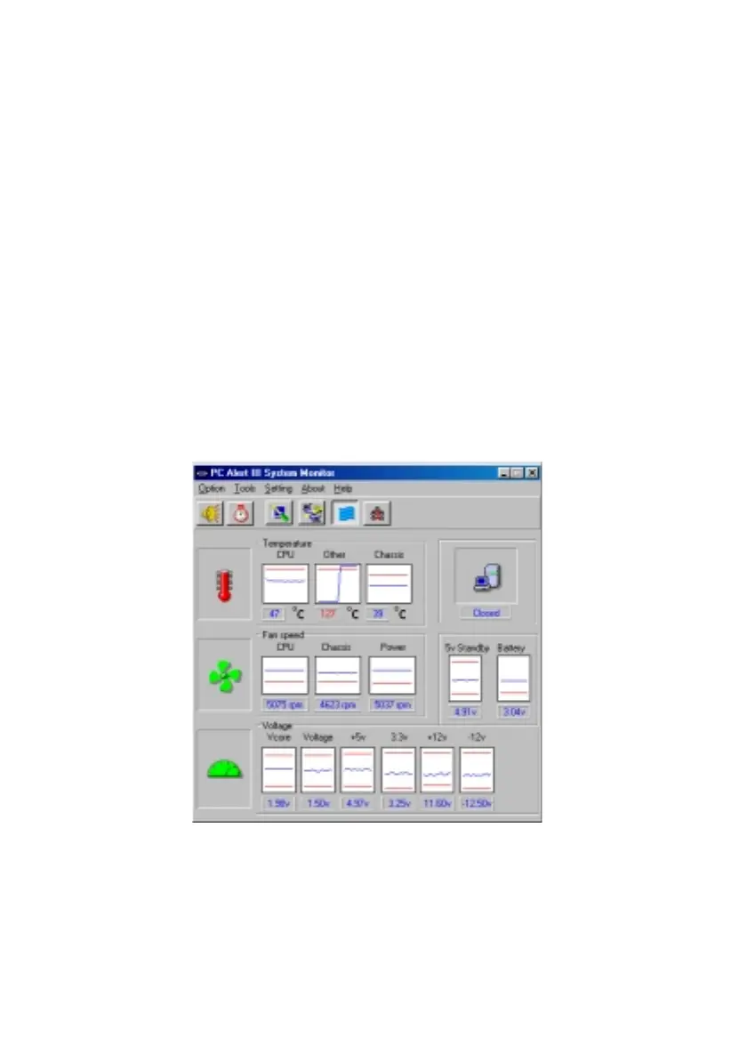 Note: Items shown on PC Alert III vary depending on your systems status.