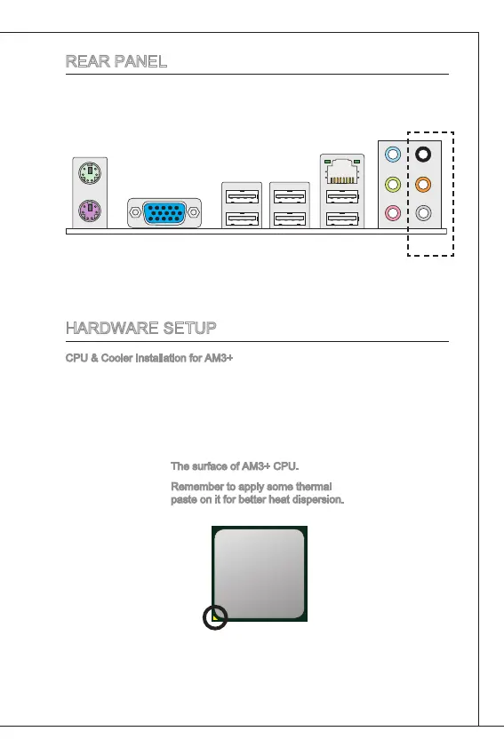 MSI 760GM-P21 FX Series - REAR PANEL; HARDWARE SETUP; CPU & Cooler Installation for AM3+