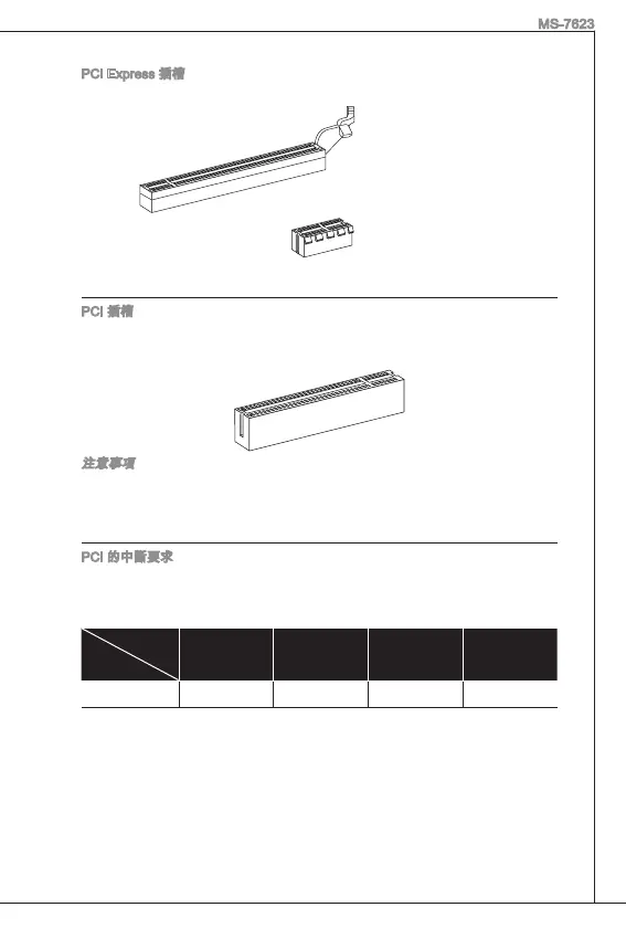 PCI 插槽支援網卡、SCSI 卡、USB 卡及其它符合 PCI 規格的外接卡。