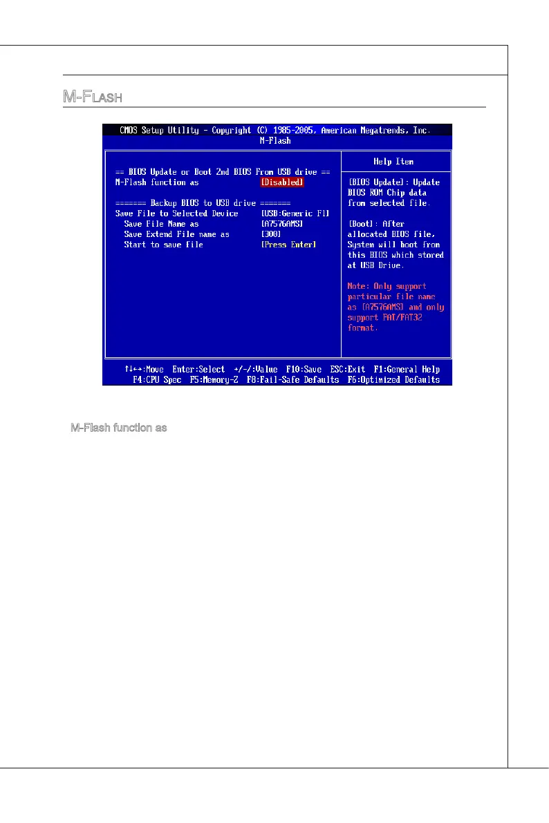 M-Flash funcon allows you to ash BIOS from USB drve/ storage drve (FAT/ FAT32