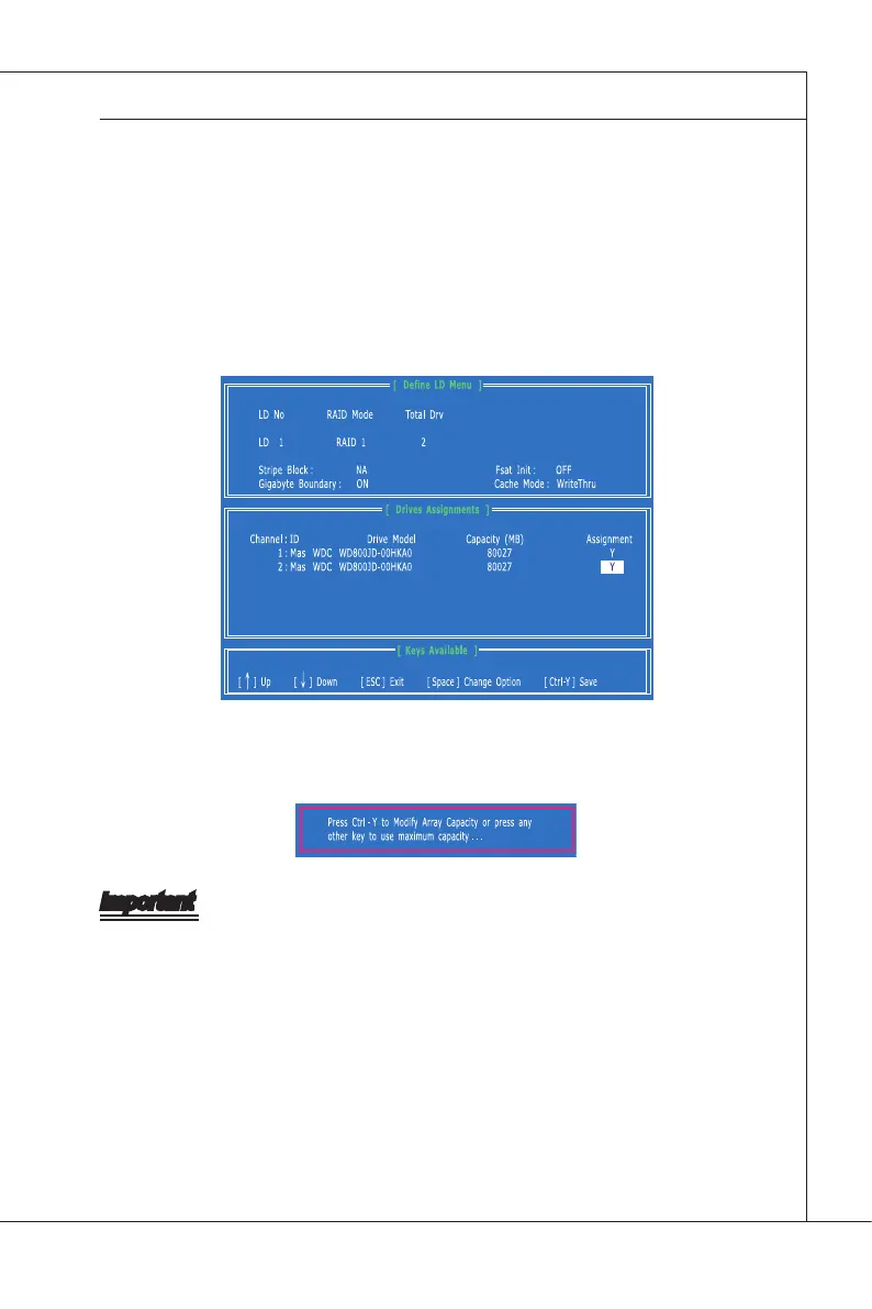 press [Ctrl-Y] to allocate the RAID capacty manually.