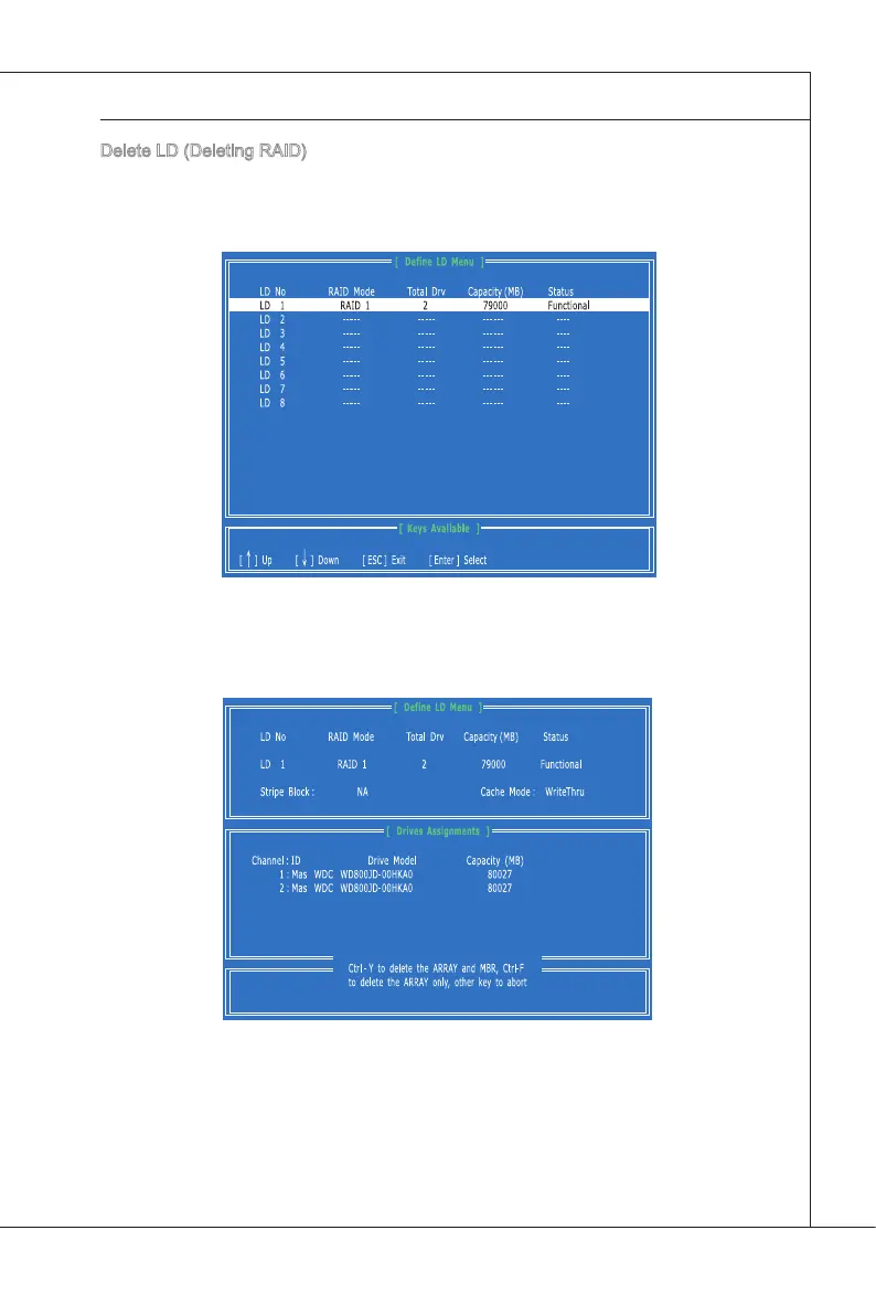 Choose a LD No you want to delete and press “Del” or “Alt+D” delete the RAID