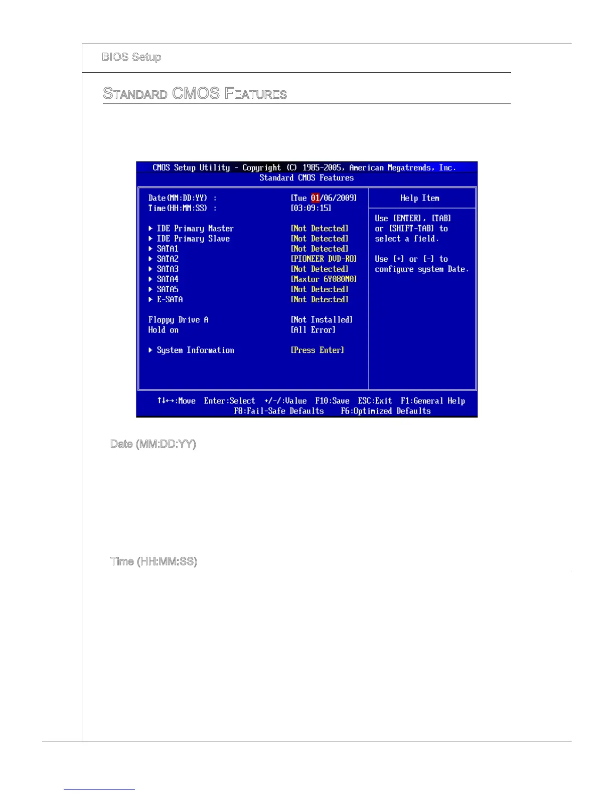 The tems n Standard CMOS Features Menu nclude some basc setup tems. Use the