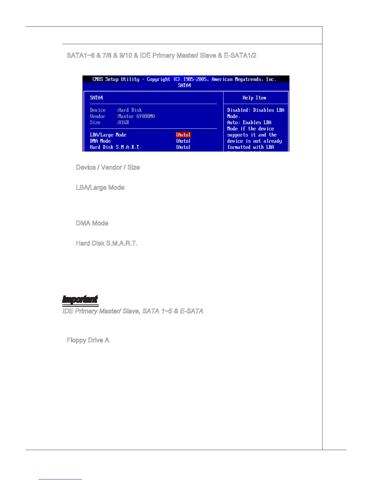 Ths allows you to enable or dsable the LBA Mode. Settng to Auto enables LBA