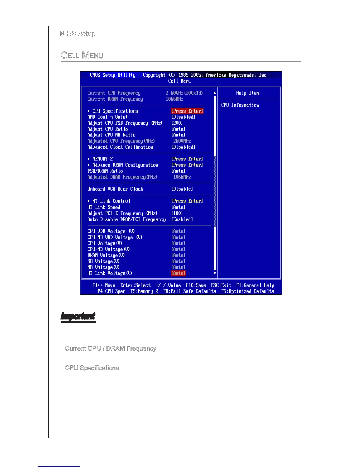 These tems show the current clocks of CPU and Memory speed. Read-only.