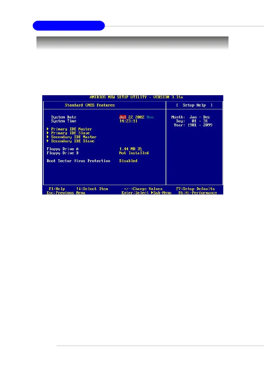 The items inside STANDARD CMOS FEATURES menu are divided into 9