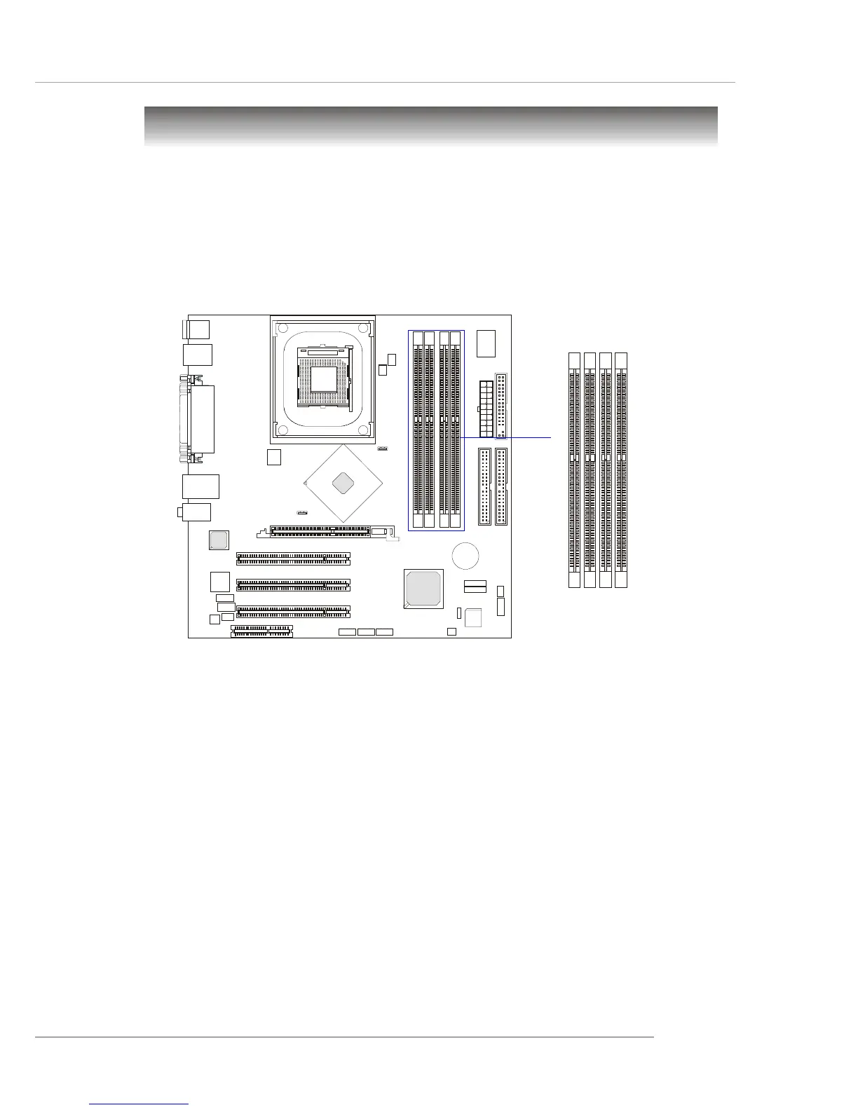 The mainboard provides 2 slots for 184-pin DDR SDRAM DIMM