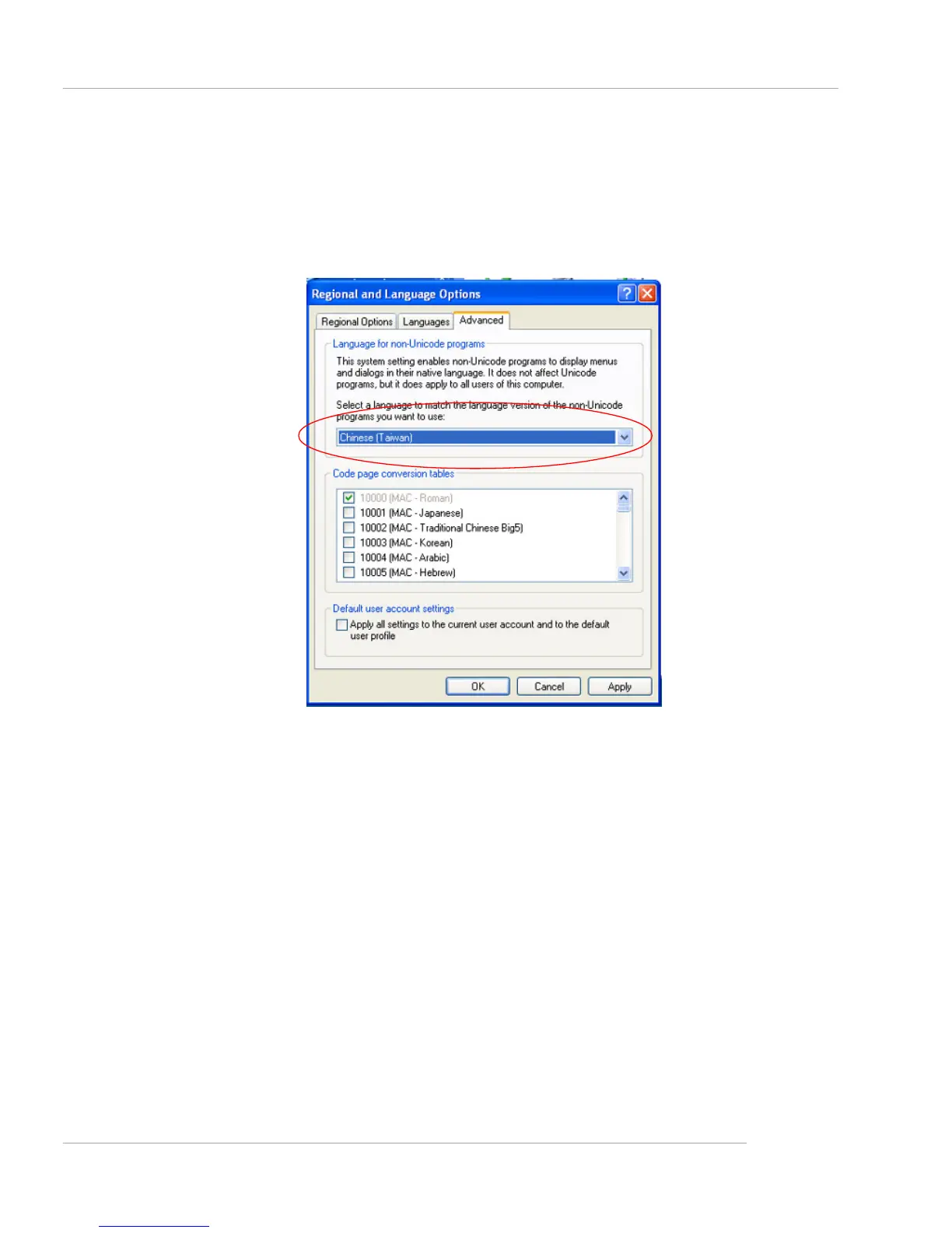 down list in the [Language for non-Unicode programs], then click [Apply]. The