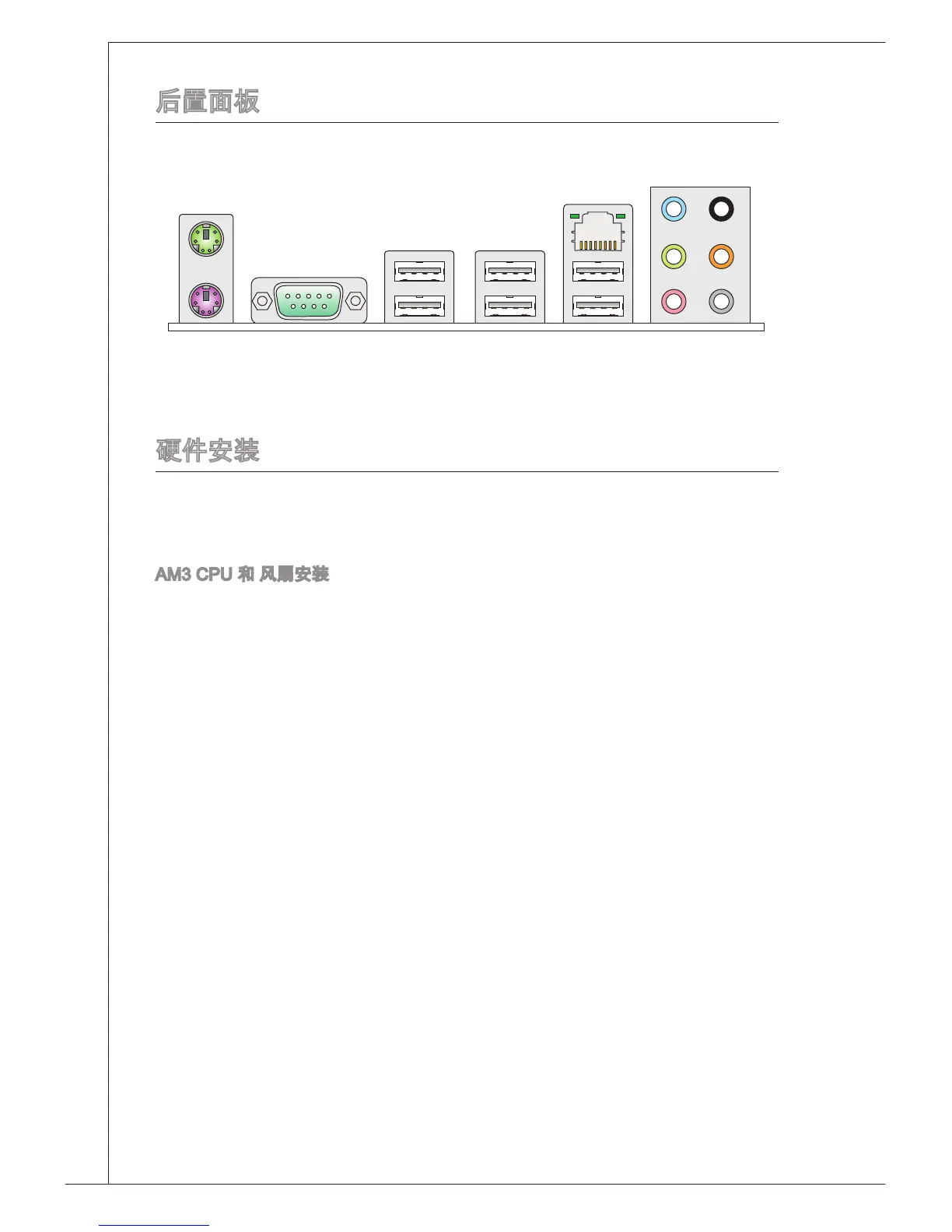 MSI 870-C45 Series - 后置面板; 硬件安装